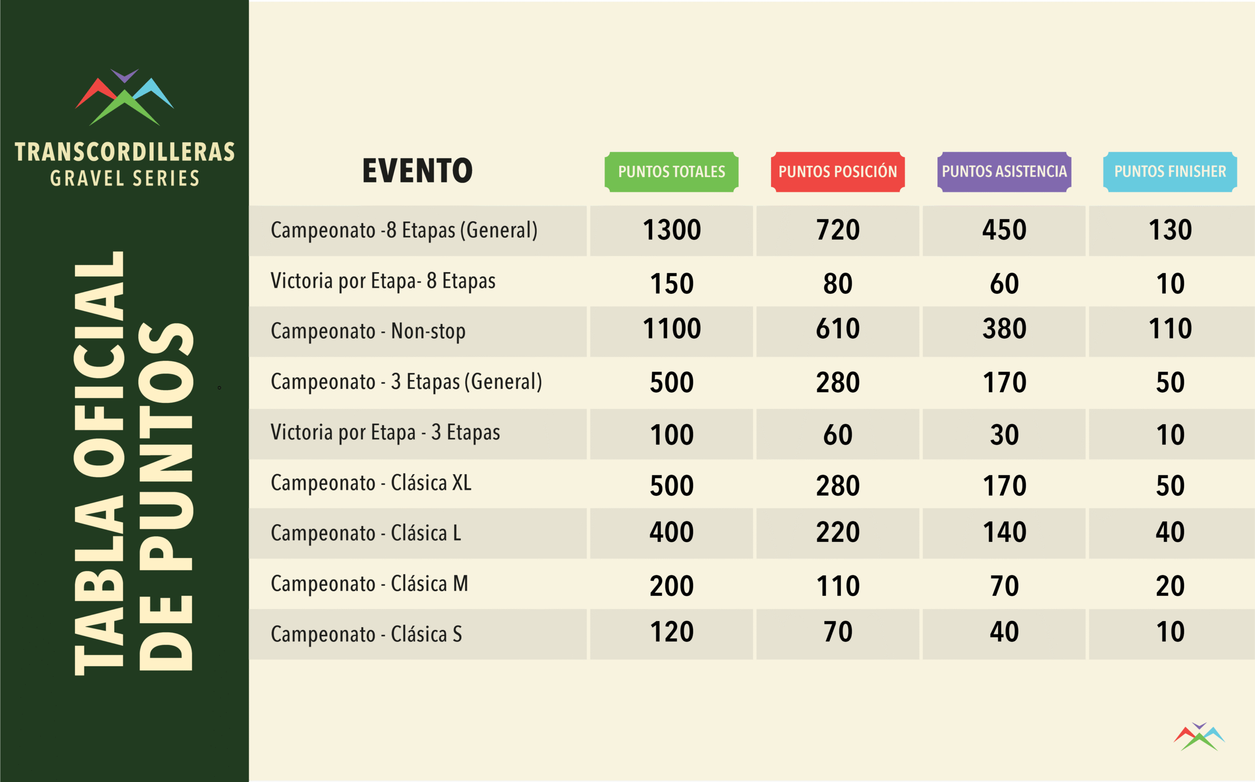 - Todos los eventos de la Transcordilleras Gravel Series entregan puntos a los participantes.